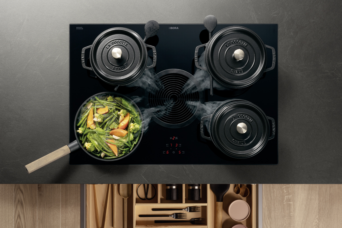 Inklusive Einbaubackofen schwarz Junker JF4306063 Energieeffizienzklasse A+, Glaskeramik Kochfeld mit Induktion und Kochfeldabzug (Umluft) Bora GP4U, Kühlschrank mit **** Gefrierfach Junker JC40GCSE0 Energieeffizienzklasse E, Einbauspüle Edelstahl Teka Flexlinea, XL-Schränken.